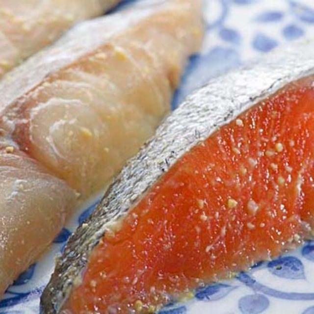 豊洲市場の村和水産は、料亭・割烹のご用達しとしてプロが認める合物の専門店。合物とは鮮魚ではない、乾かしたり塩漬けにしておいた海産物です。先代から長年こだわって仕上げられた西京味噌漬けはプロも愛用する自慢の逸品。絶妙の漬け具合を見極めながら、素材のそれぞれのもつ旨みを最大限に引き出します。上品な甘みと焼いた時の香ばしい香りは、お酒やお食事の至福を演出します。脂がのっている高級な銀だらや淡白な鰆など人気の漬魚の詰め合わせをお届けします。