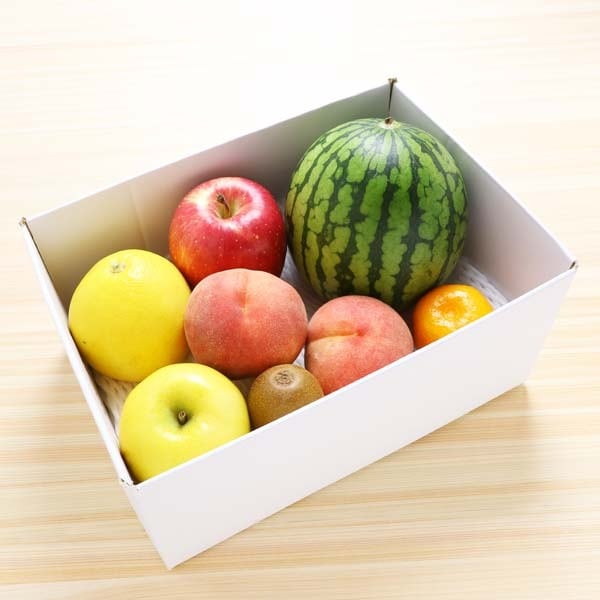 日本国内はもちろん世界各地から旬のフルーツが集まる豊洲市場の青果。その日その日競り落とされたフルーツの中から築地のフルーツの目利きが、季節の先取りした一品からまさに旬のフルーツを詰め合わせをします。フルーツには等級がありますが、目利きが選ぶのは贈り物や高級店に並べられる優や秀以上の選りすぐりの一品です。フルーツの種類は指定できませんが、詰め合わせとして、春から夏はりんごやデコポン、甘夏などの 柑橘系、夏から秋は桃、パイナップル、日向夏、パッションフルーツなどの夏のフルーツ。秋から冬にかけて、ぶどう、梨、柿、りんご、洋梨、冬から春はりんご、柿、みかんなどの柑橘系 を中心におすすめのフルーツを詰め合せしてお届けします。